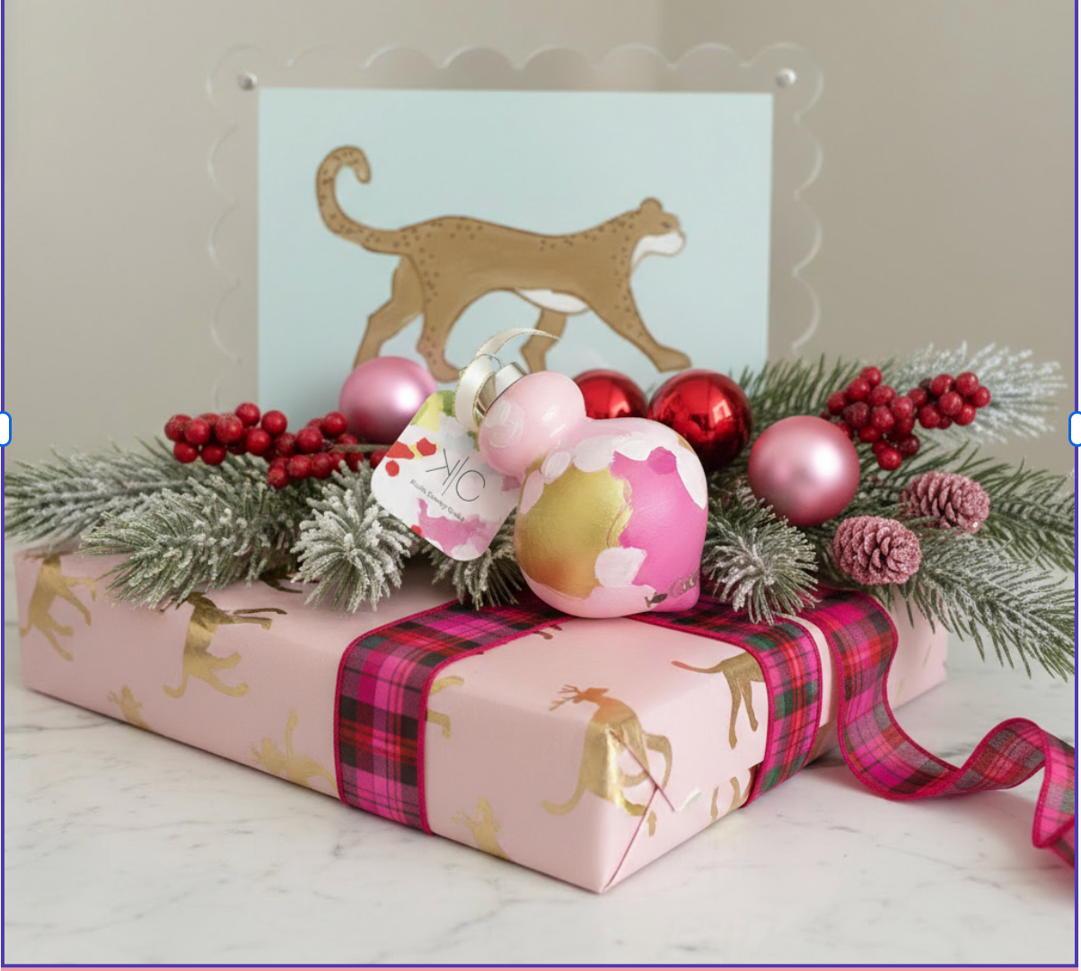 HOLLY JOLLY Ornaments and sweet GOLDEN LEOPARDS are ready for the perfect gift!