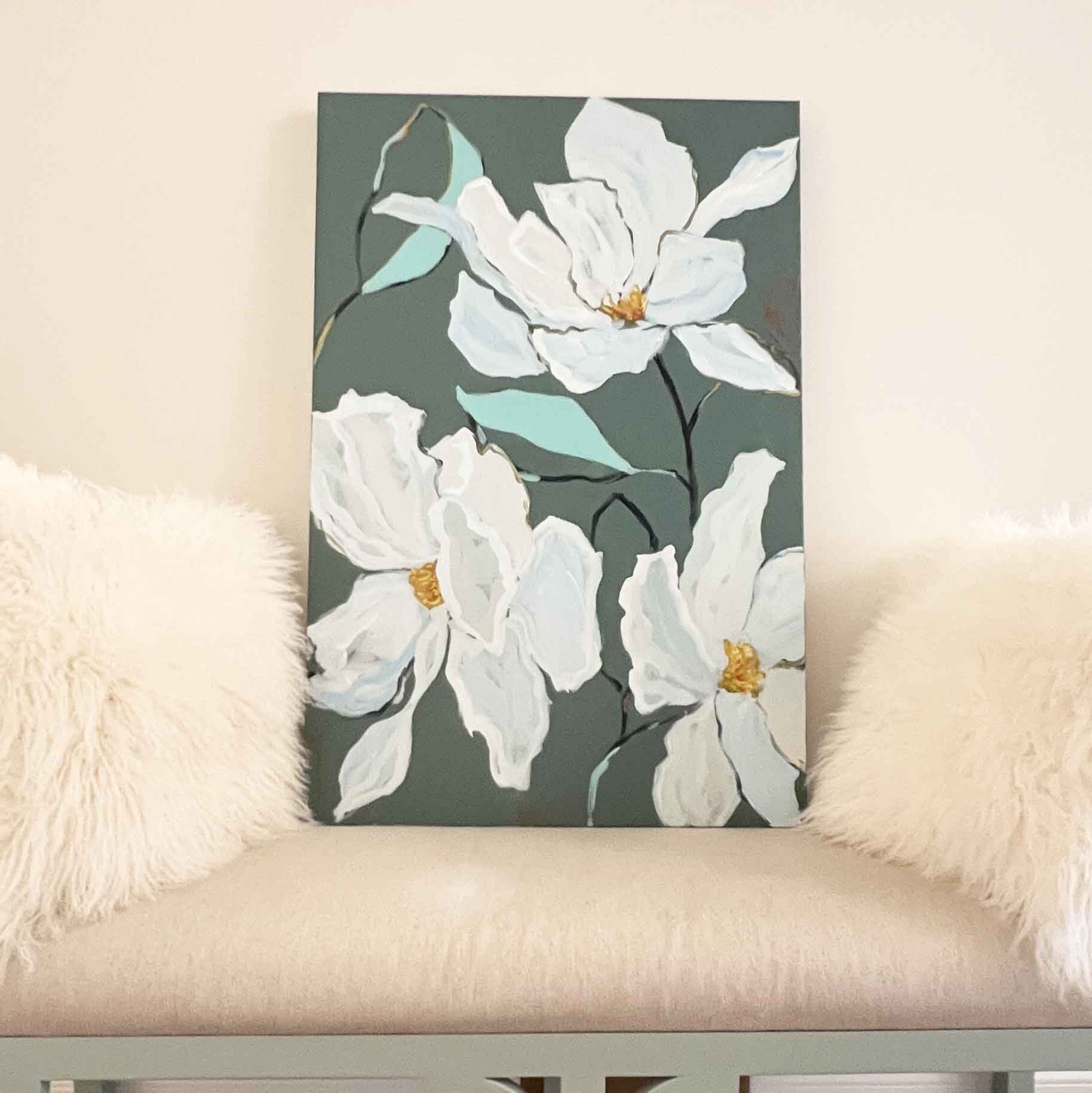 I created this piece to be perfect for coastal living rooms, modern farmhouse interiors, or any space in need of botanical beauty and classic elegance.