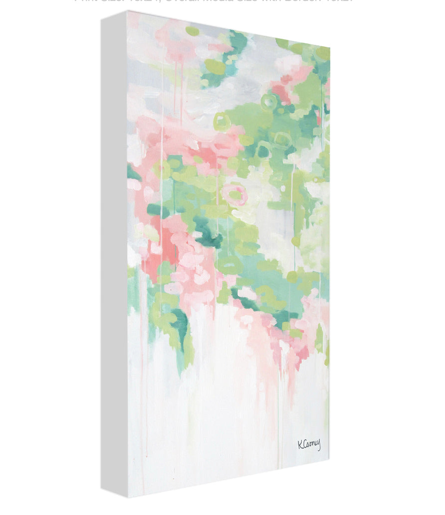 3. A Gallery Wrapped Canvas Print - Archival inks are used to print on high quality artisan canvas which stretched over wood stretcher bars, making your piece look like it was painted right onto an artist's canvas. The sides are white and 1.5" deep. This comes with a sawtooth hanger on the back so you can hang your piece as-is.