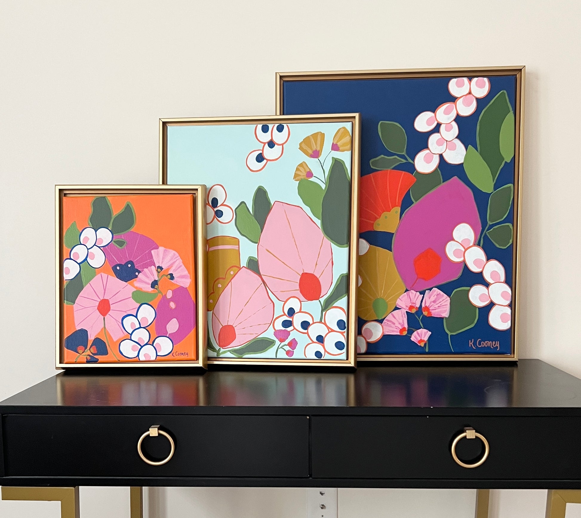 These bold florals with striking backgrounds are sure to wow the viewer and add joy to your home!