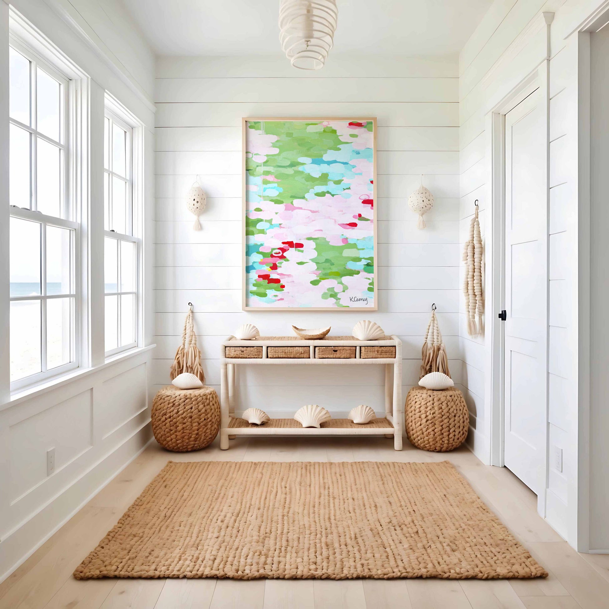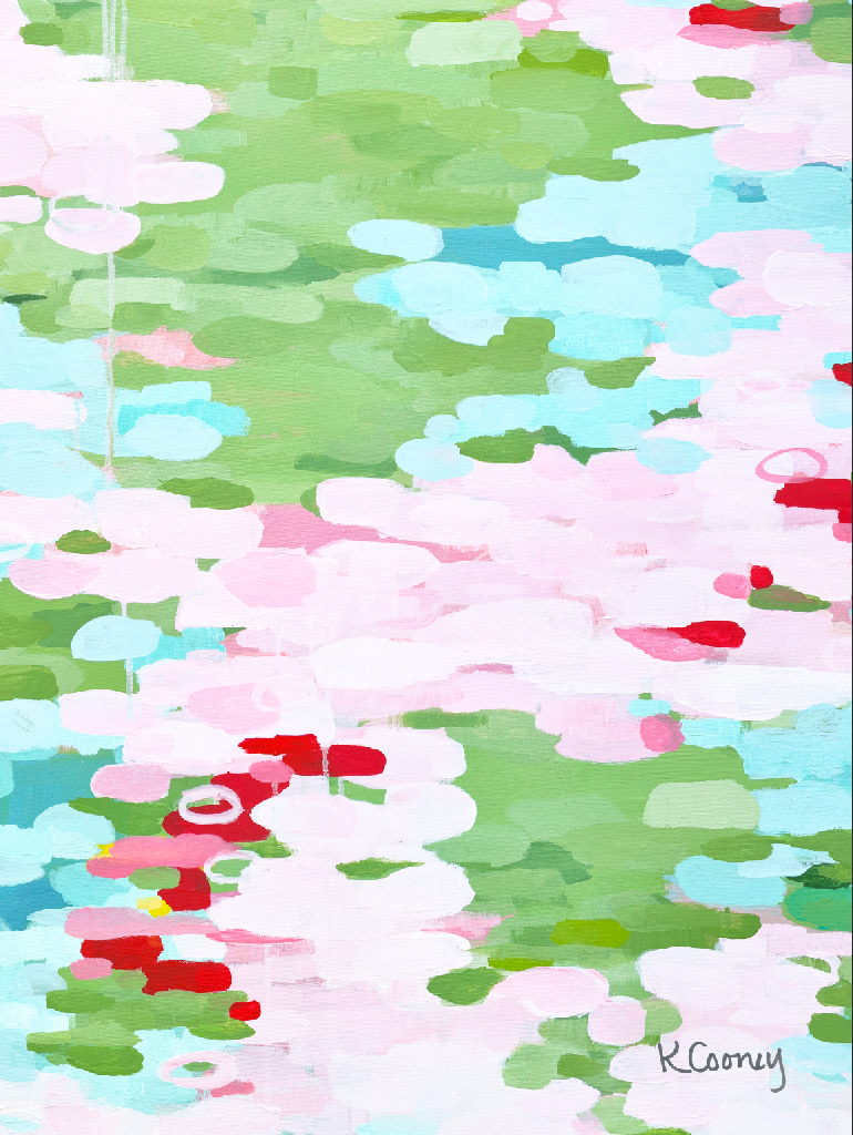 Pops of all my favorite feminine colors absolutely shine in this statement piece. Tiny spots of cherry red next to pale pinks and greens can't help but make the viewer smile.