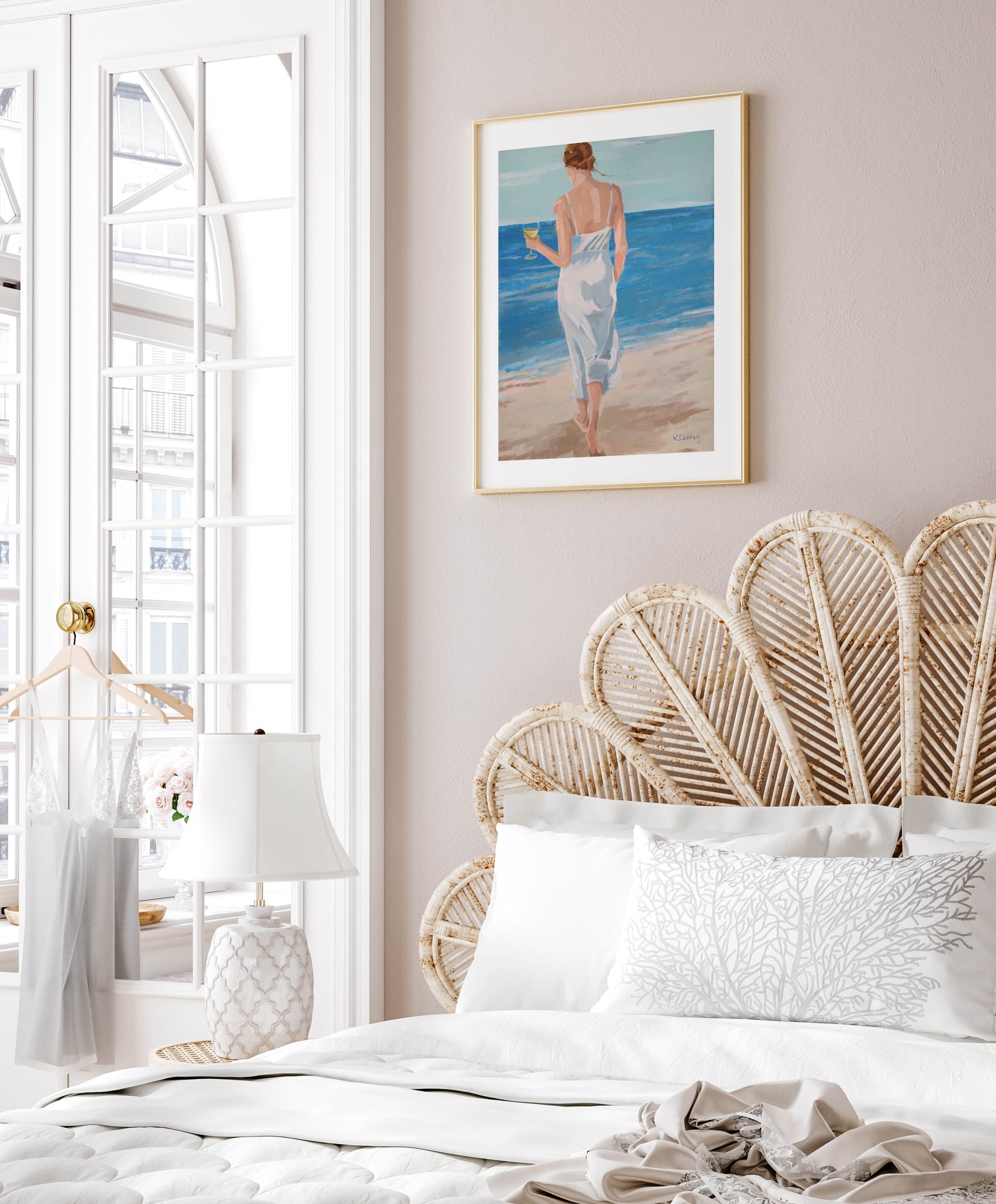 This piece has both glamour and a coastal theme...all my favorite things! A large brush was used to create a textured look. The sway of her light dress and the sparkle of her wine summons all the joy of a beach getaway.