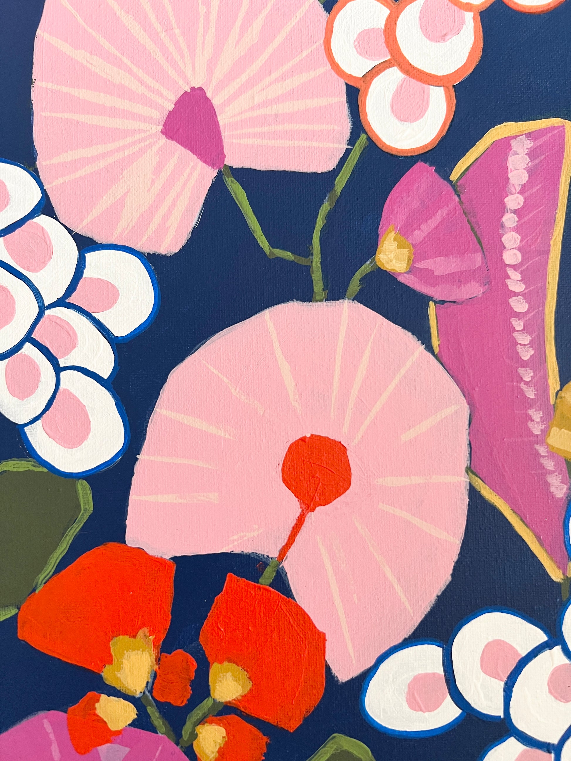 These bold florals with striking backgrounds are sure to wow the viewer and add joy to your home!