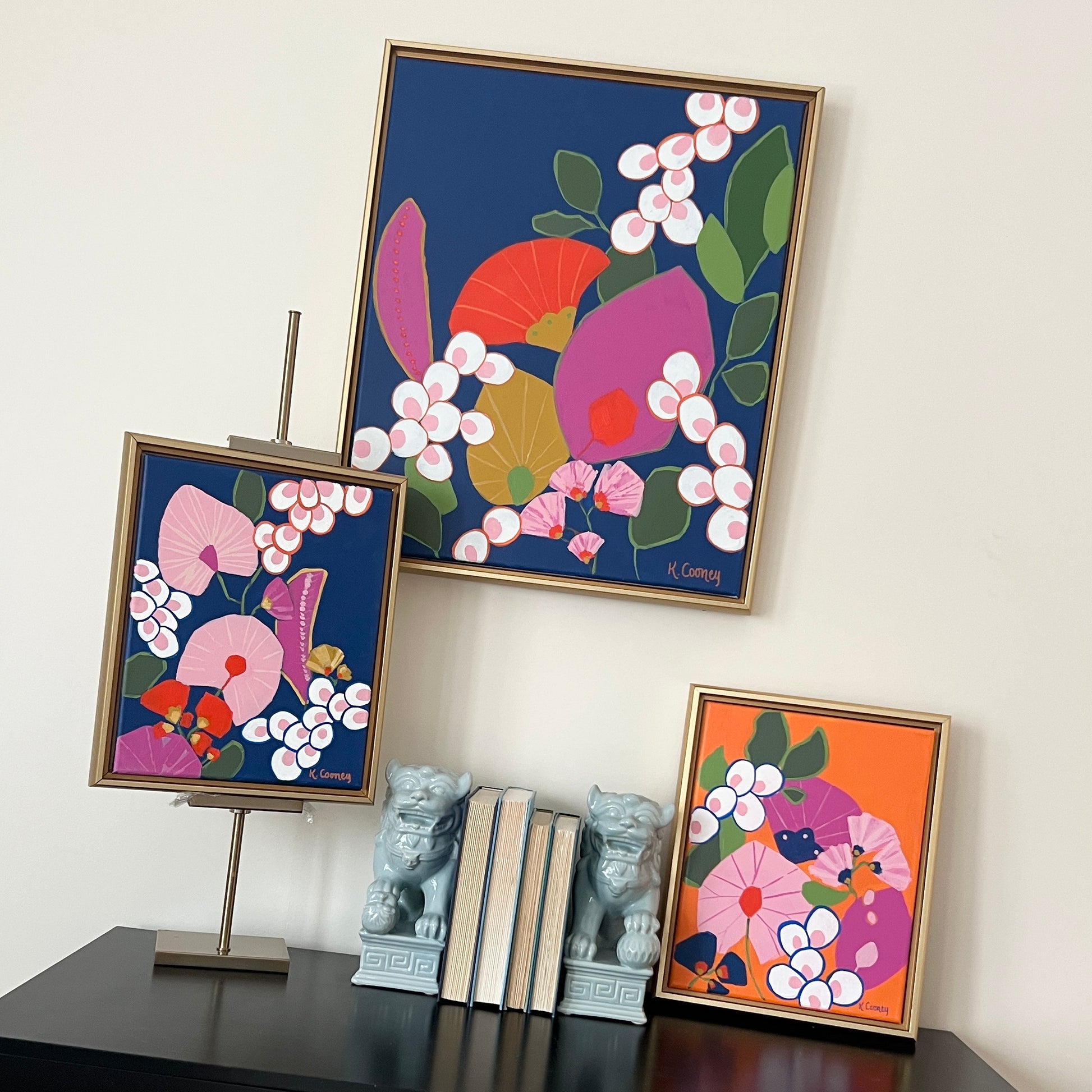 This collection was inspired by my love of fashion and my recent obsession with the intricate beauty of Japanese kimonos. I've played with traditional floral and fan elements and added my own modern spin with my favorite colors.